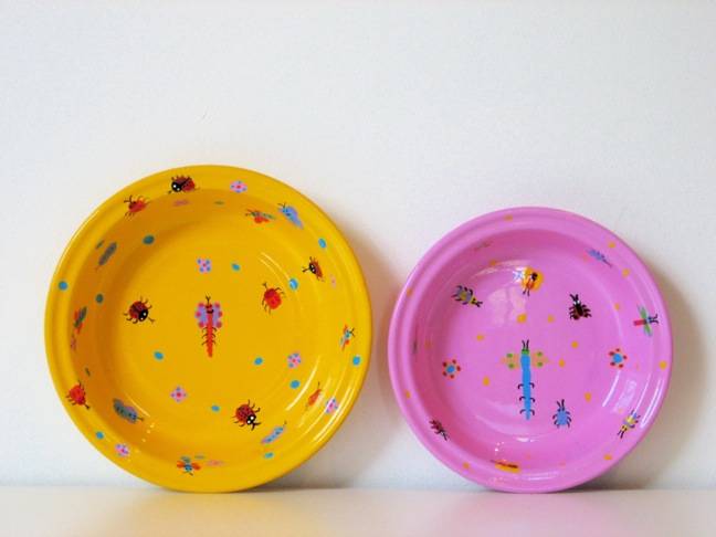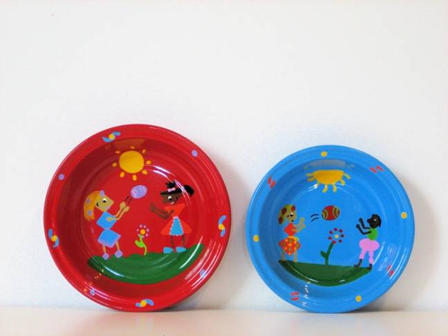De prachtige kleurrijke bakjes zijn in 2 maten te verkrijgen n.l. 16 cm € 7,75 en 18 cm doorsnede € 8,75.