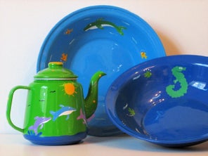 Theepot Waterwereld groen, licht blauw, zacht groen, donker blauw € 25,00 inhoud 2.3 liter